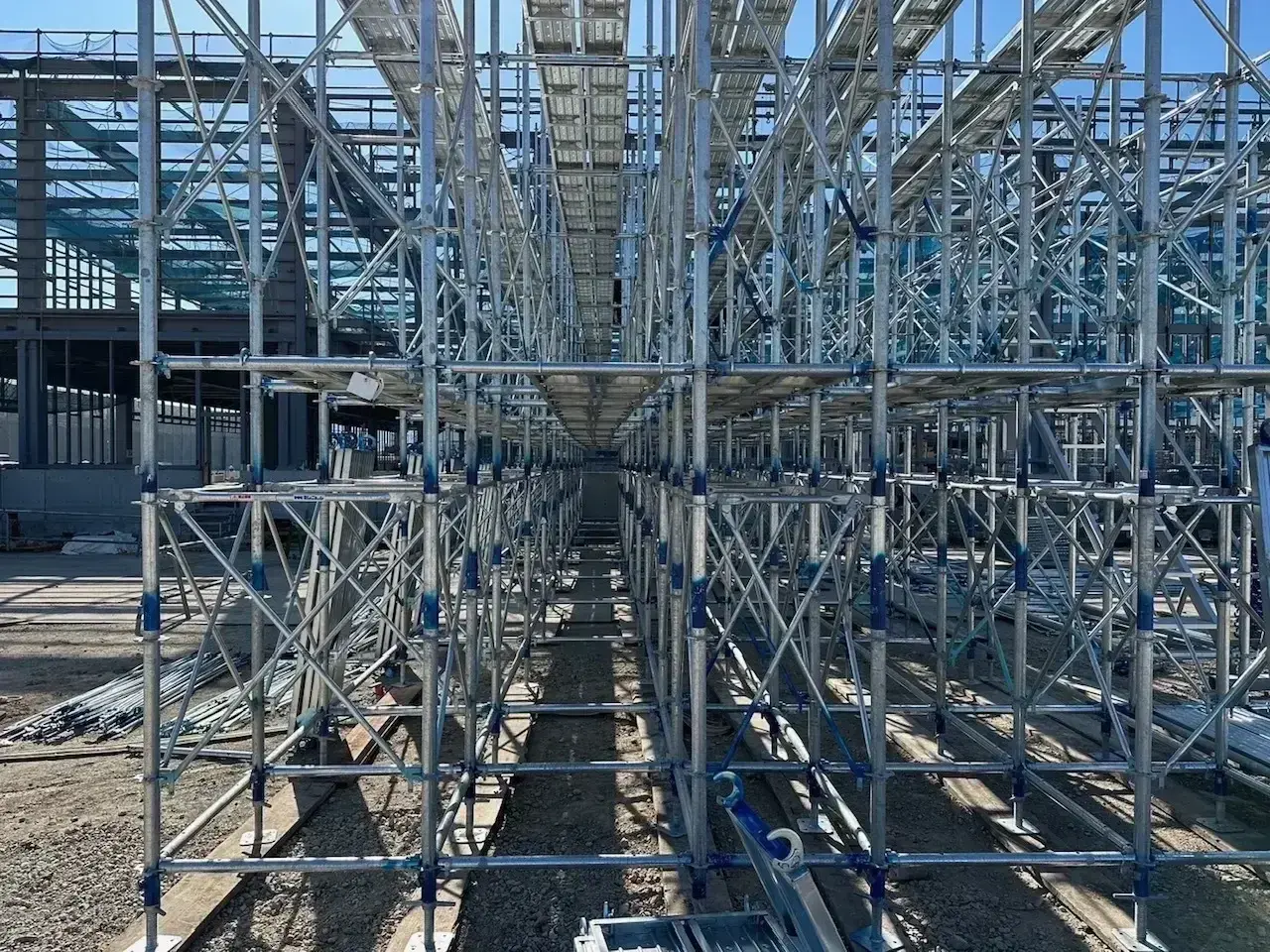 くさび緊結式足場は狭小地にも対応できる、汎用性の高い足場です。作業効率も高く、迅速・確実な足場をお届けできます。