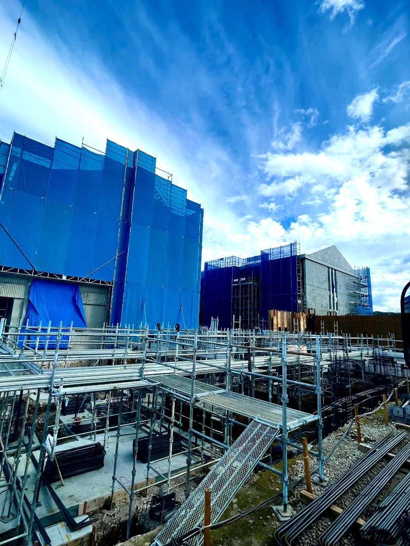某小学校新築工事用の足場を施工させていただいております。