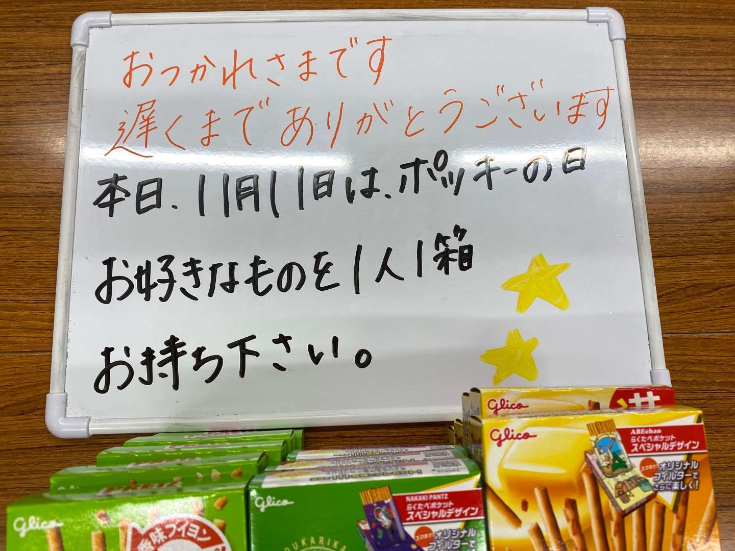 ANZENも数年前から、事務員さんの「現場で働いている皆さんに感謝の気持ちを送りたい」の一言から、社員の皆さんにポッキーをお渡ししています!!