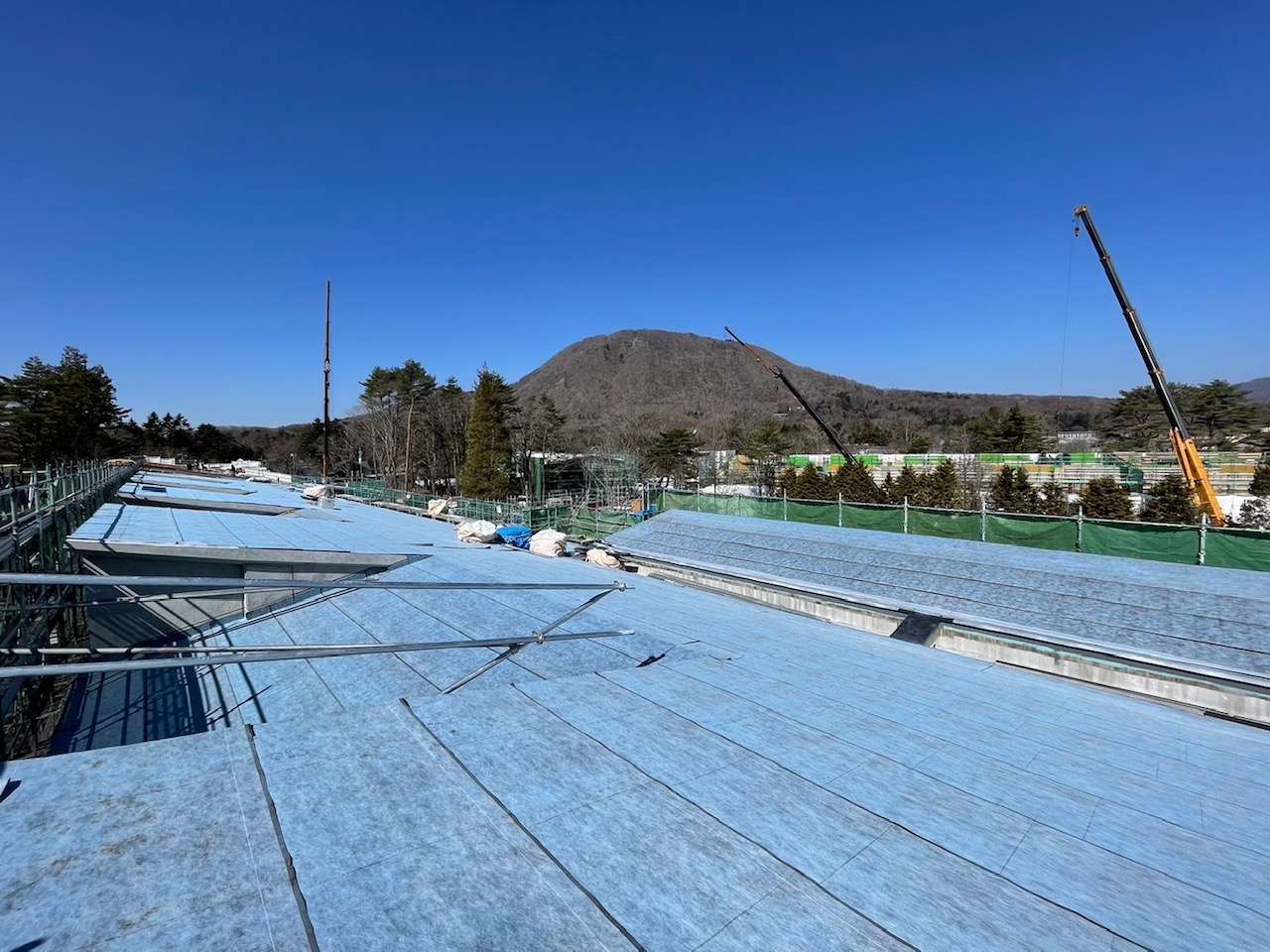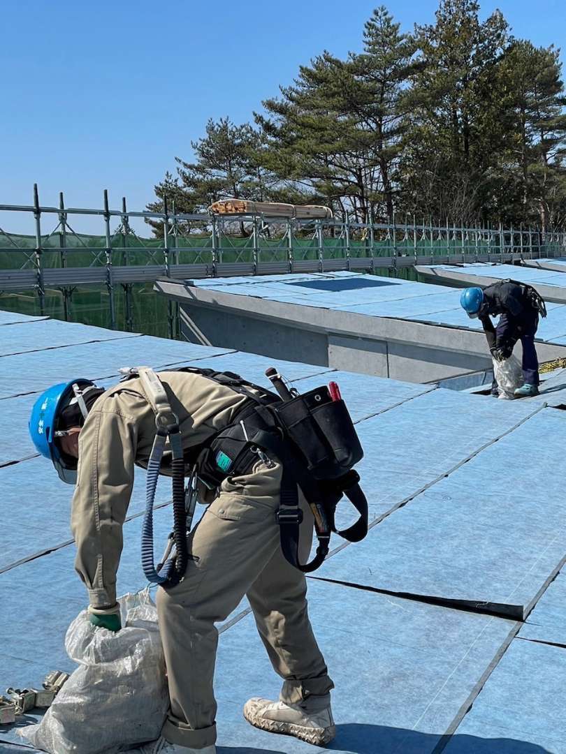こちらの作業は、屋根に落下防止を付けるための間配りをしているところです。