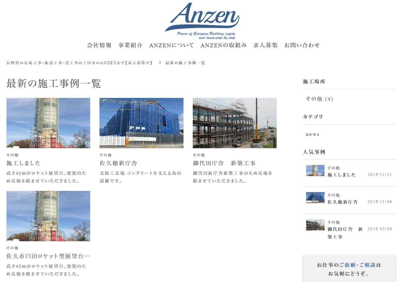 長野県上田市を拠点に、県内全域で足場工事や仮設工事等を手掛けている株式会社ANZENです。